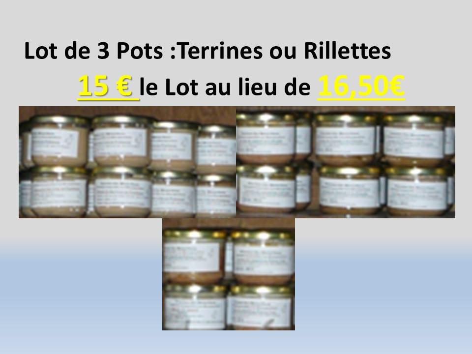 Ingrédients : Viande de poulet (54%), Graisse de canard (37%), Champignons (6%), oignons, sel, poivre noir, thym, muscade, quatre épices