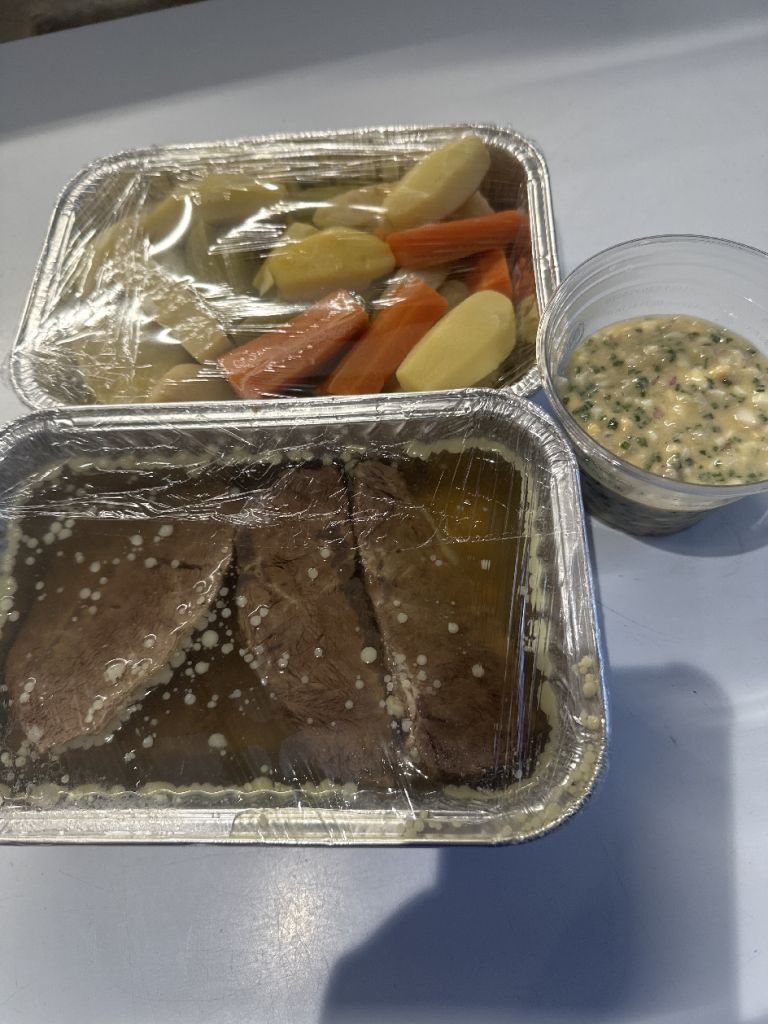 2 pers: pot au feu de paleron,légumes au bouillon et sauce ravigote