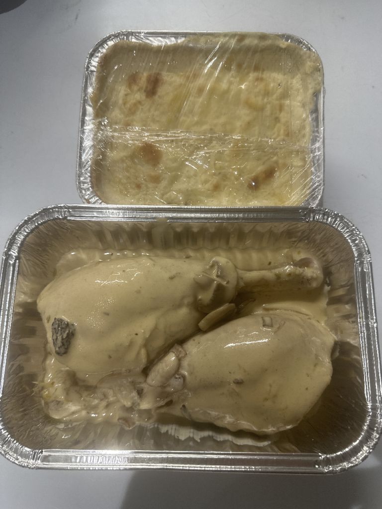 2 pers: 2 pillons de chapon sauce forestière,gratin dauphinois