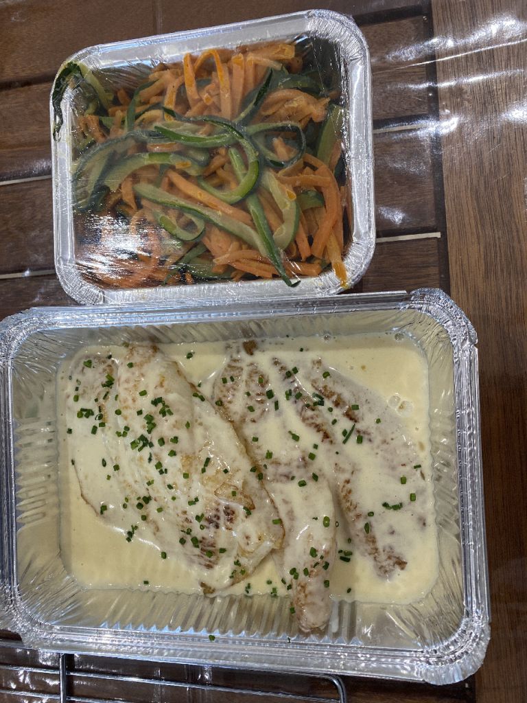 2 pers: filet de St Pierre sauce normande , spaghettis de légumes