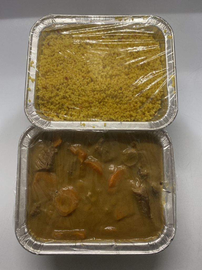 2 pers:sauté d’agneau au cidre et curry,semoules aux épices douces