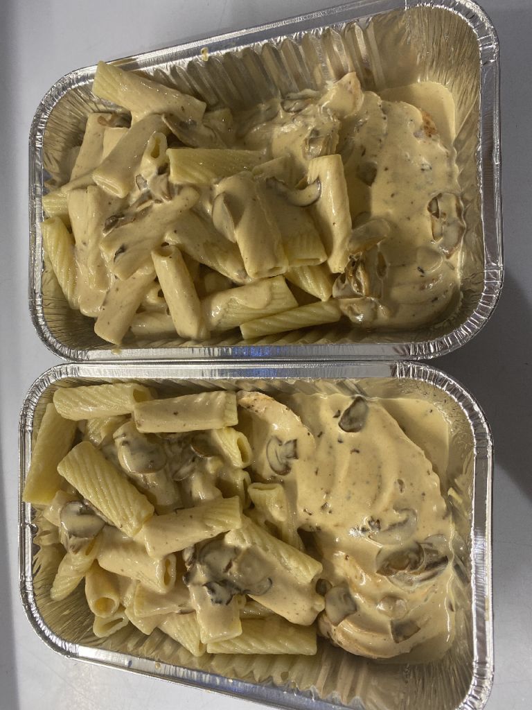 4 pers blanc de poulet, sauce forestière et penées