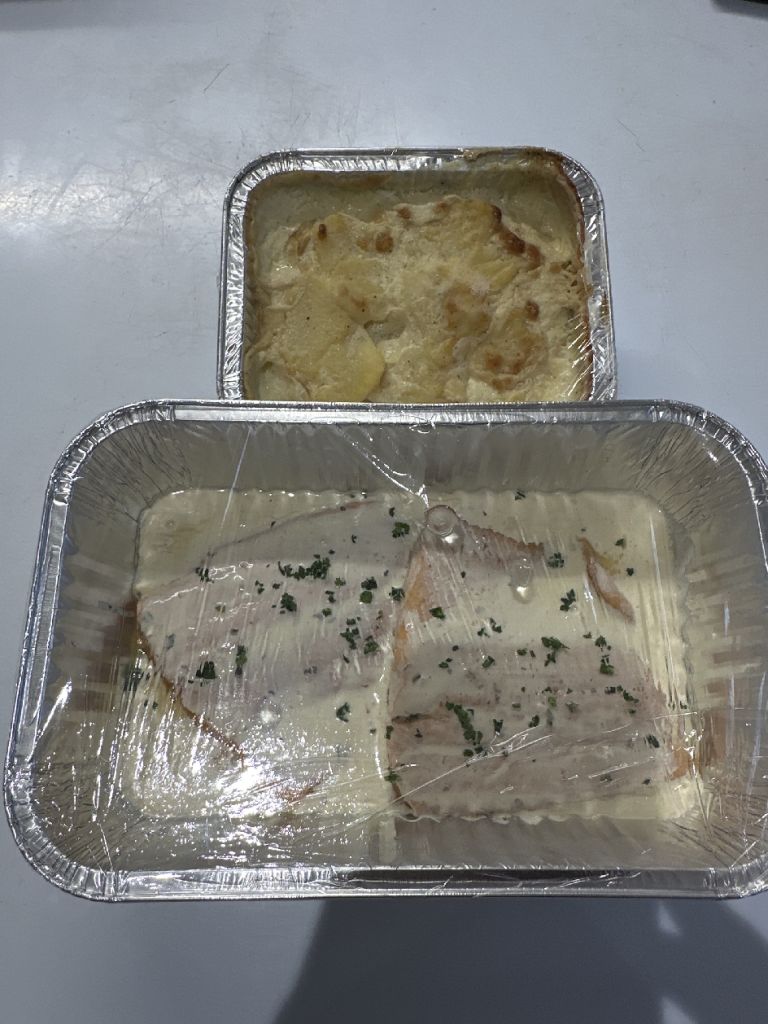2 pers: filet de truite sauce basilic, gratin dauphinois