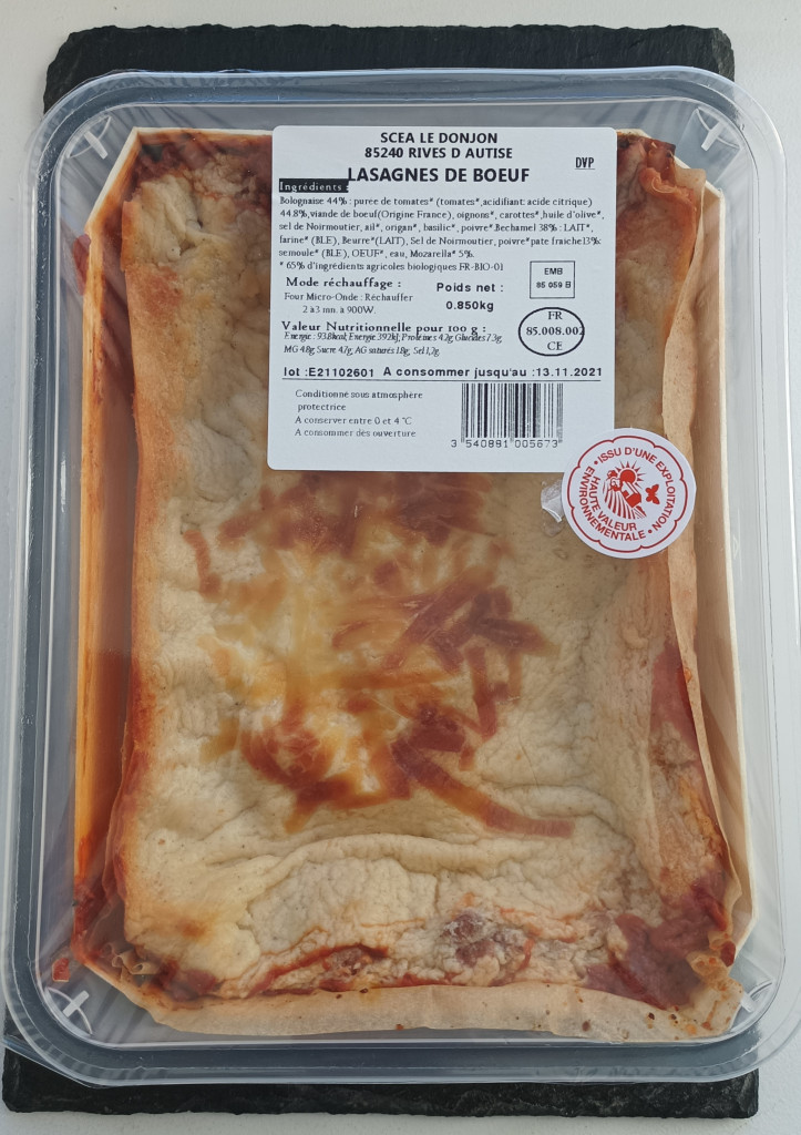 Origine : Scea les fuies, Benet. Pate : 500g Bolognaise : 490g
