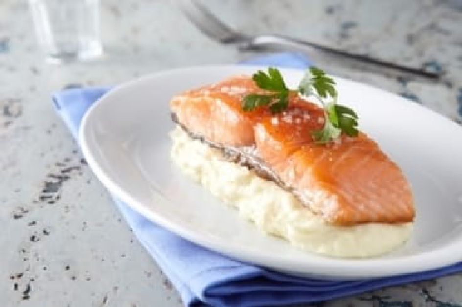 Pavé de saumon sauce beurre blanc, riz + dessert