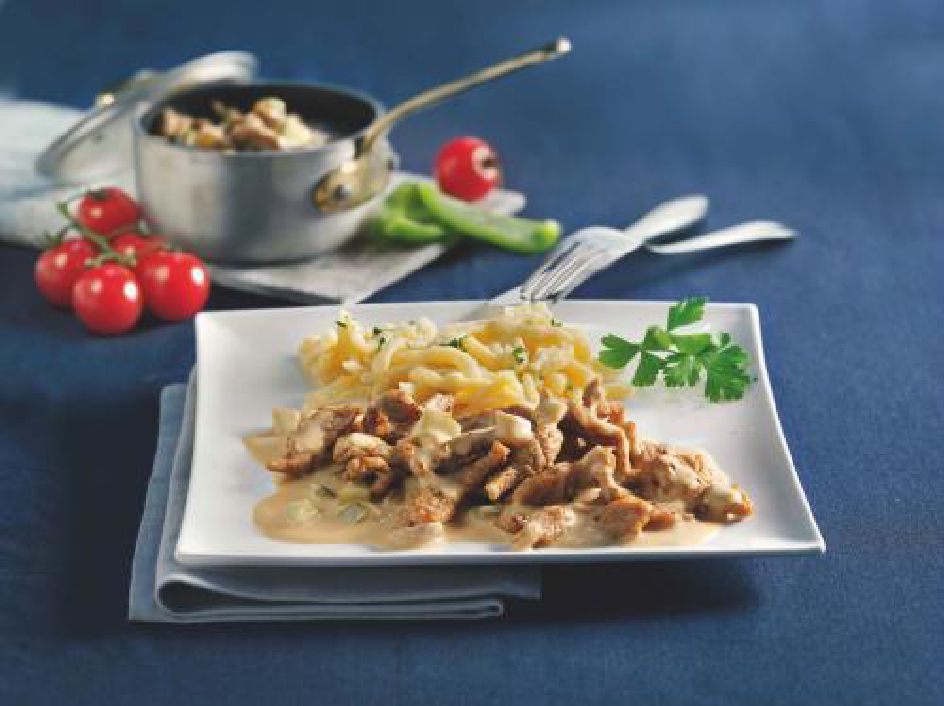 Émincé de veau sauce aux cèpes et champignons , spaëtzlé + dessert